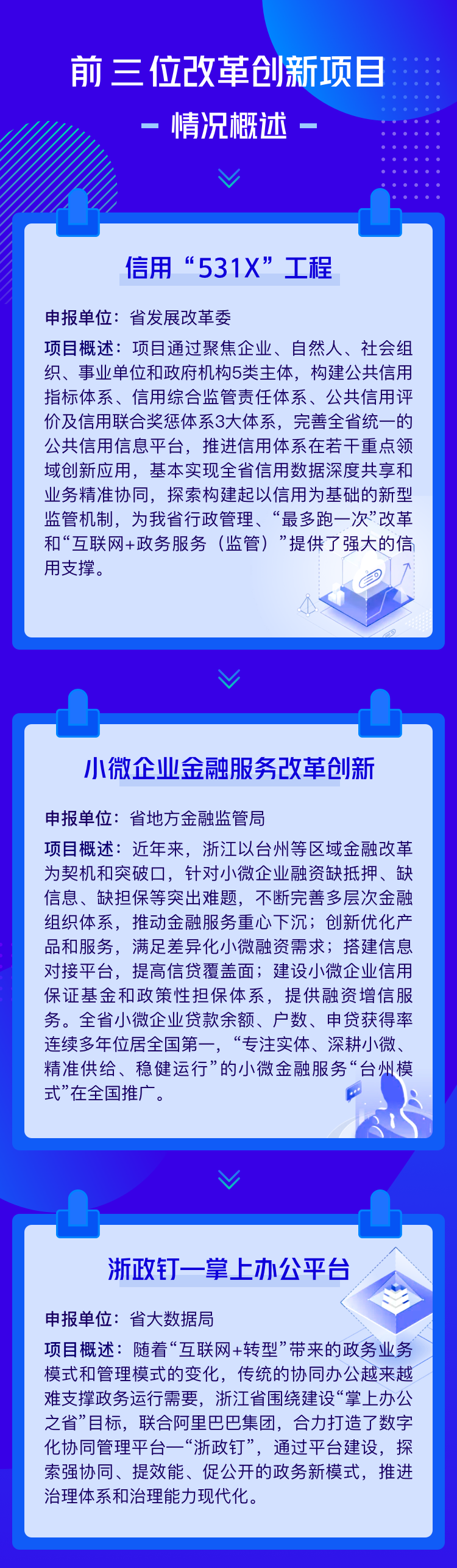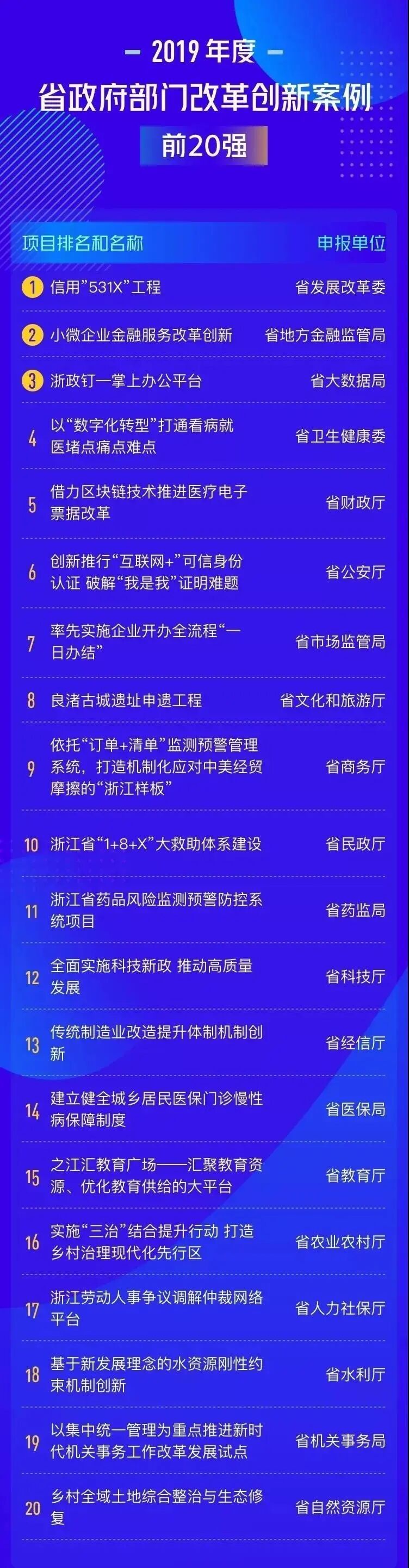 一年一度的省政府改革创新项目评选是绩效管理工作的重头戏。经过重重遴选,省发展改革委申报的信用“531X”工程等20个改革创新项目脱颖而出,成为2019年度省政府部门改革创新案例前20强。